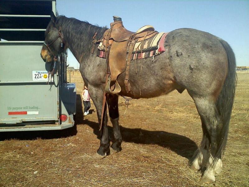 2005 "bay roan" (brown based, looking blue) gelding, 16.1 hh, 1425 lbs.,
